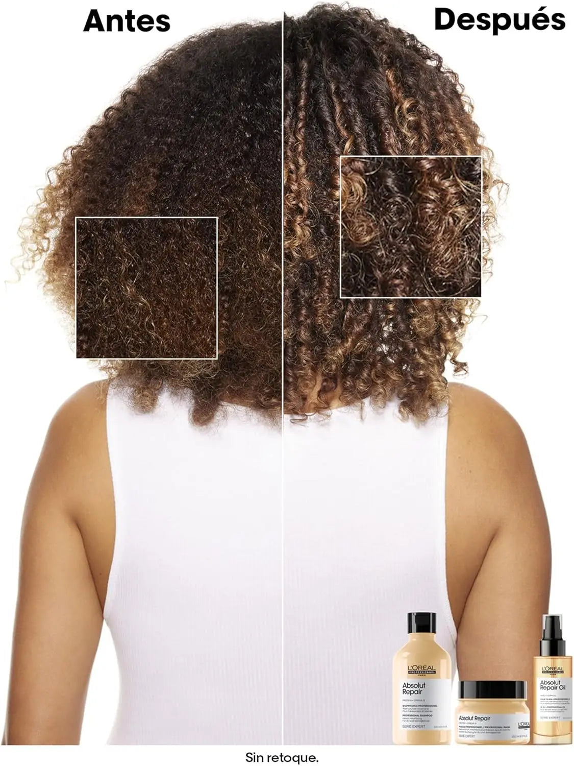 Les cheveux sont plus faciles à coiffer et plus brillants après la routine de traitement, y compris le shampooing resurfaçant de réparation absolue.