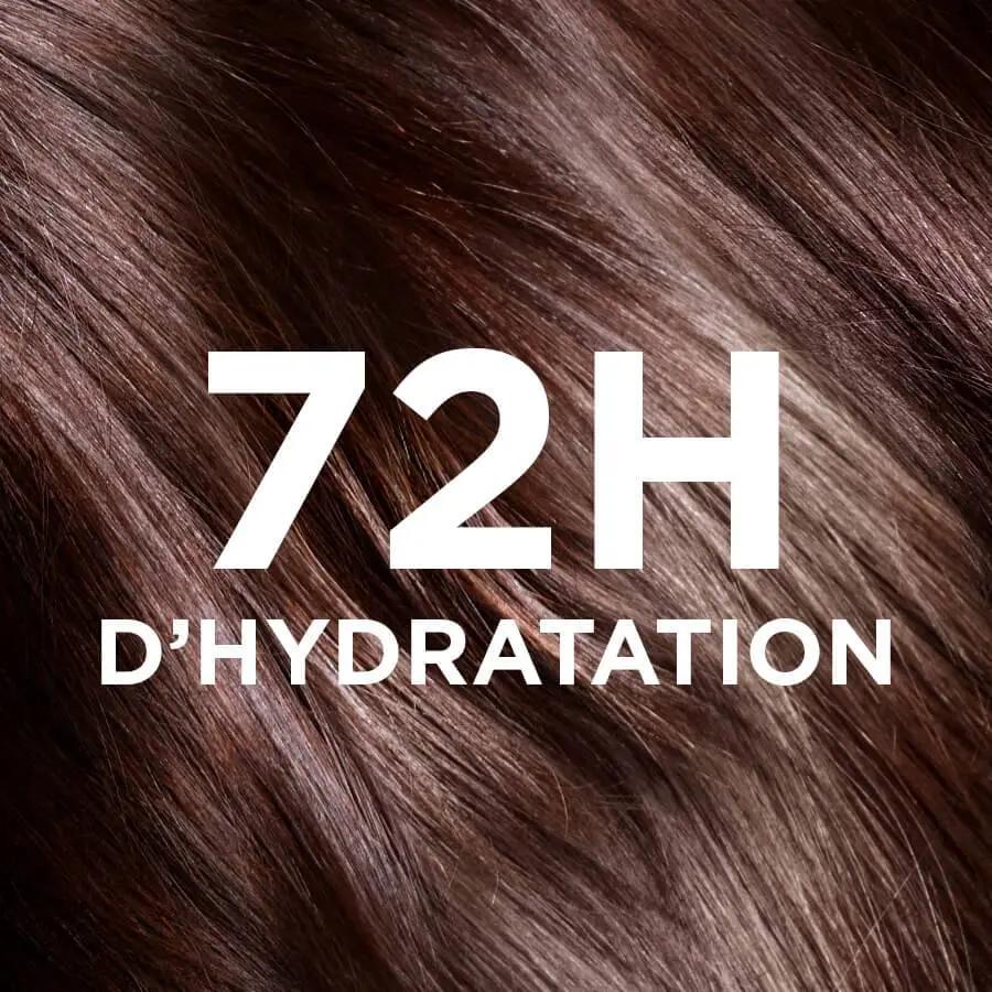 Le remède agit comme un aimant en fixant l’hydratation pendant 72h* pour des longueurs saines & nourries, sans effet gras.